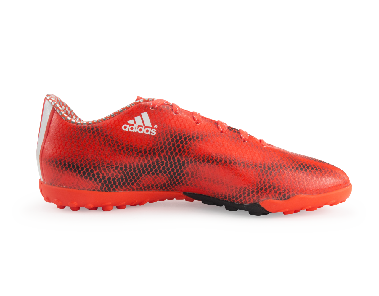 Built by adidas from soft and highly abrasion resistant Bravo synthetic material with an all-over ghost graphic and leather finish in the forefoot, the adidas F10 Turf Soccer Shoe offer fantastic durability. Bold three stripes branding on the heel of the F10 TF football boots is all opponents will see as they try and keep up while a die-cut EVA sockliner offers lightweight cushioned comfort. Designed to deliver maximum acceleration and perfect traction on on turf and hard ground, a non-marking TRAXION 2.0 TF outsole features grippy turf rubber studs.