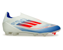 Liberate your pace with the adidas Men’s F50 League LL FG/MG in White/Lucid Blue. Engineered to unleash the complete power of your speed, agility, and movement. Securing your fit with an adaptable laceless collar, the Fiberskin upper of these adidas League soccer cleats displays a Sprintgrid design on the forefoot. Underneath, the Sprintplate 360 outsole is tailored for enhanced propulsion across various surfaces.