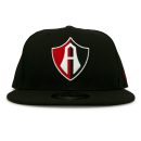 The New Era Atlas 9FIFTY Snapback Cap Black features intricate embroidery, including the Atlas logo on the front, “Atlas” lettering on the back, and an additional logo detail on the right panel. Crafted entirely from 100% polyester, this all-black, adjustable cap offers a sleek and comfortable fit.