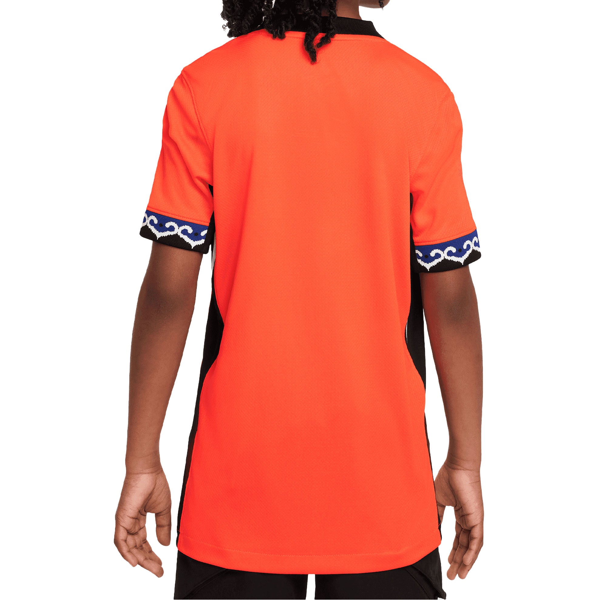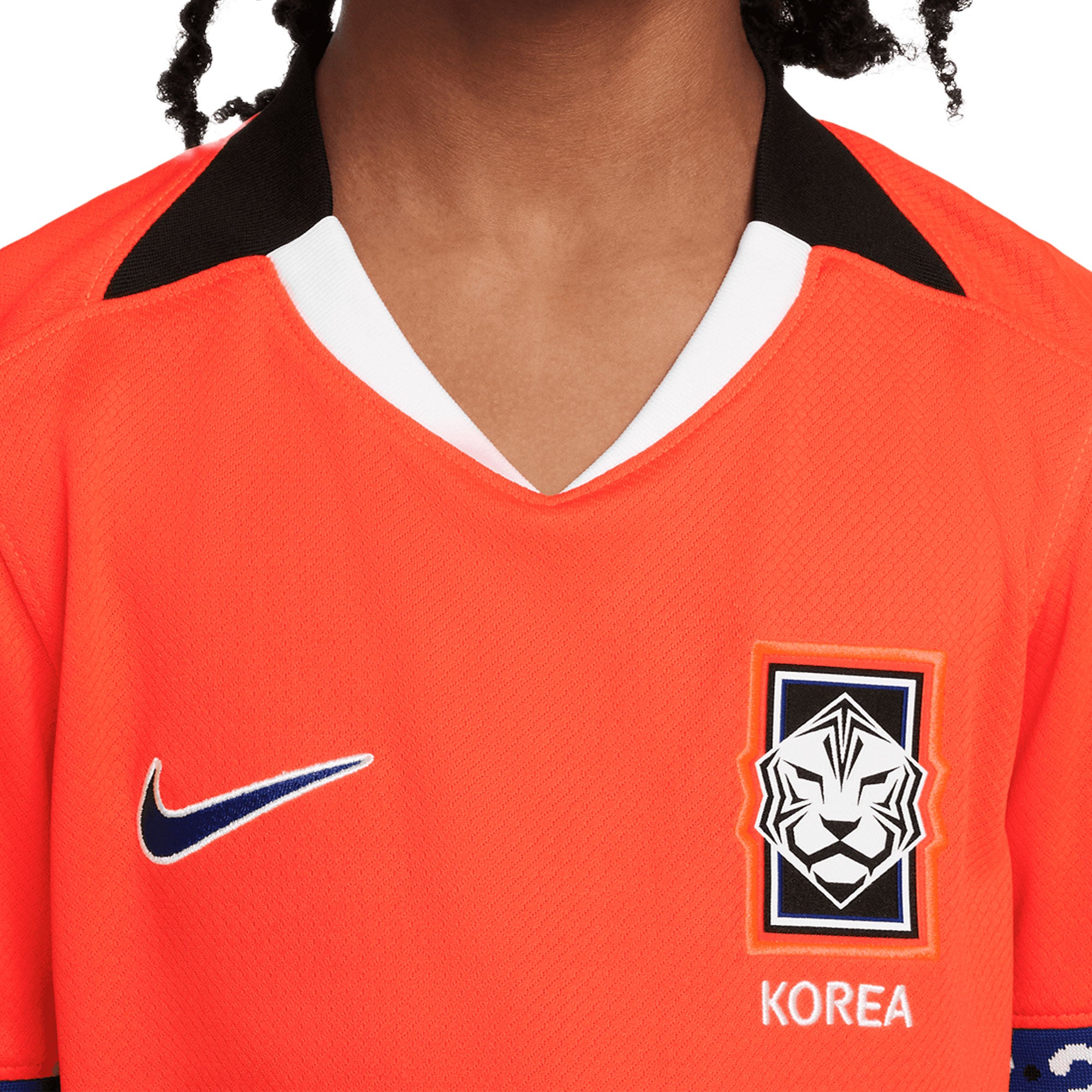 The Nike Kids Korea 2025/26 Home Jersey in Red showcases the national colors with bold black, blue, and white accents. Honoring tradition, the sleeve hems are inspired by Bojagi—traditional Korean wrapping cloths used in ceremonies and special occasions.