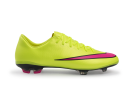 The Nike Jr. Mercurial Vapor X Firm-Ground Soccer Cleat delivers high-speed control and lightweight explosiveness for the attacking forward. From the glove-like fit to the Vapor traction pattern, every element is designed for elite-level play at top speeds. The tongue-less upper features ultra-thin Teijin microfiber synthetic leather that conforms to the shape of your foot for a second-skin fit.