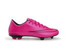 The Nike Jr. Mercurial Vapor X Firm-Ground Soccer Cleat delivers high-speed control and lightweight explosiveness for the attacking forward. From the glove-like fit to the Vapor traction pattern, every element is designed for elite-level play at top speeds. The tongue-less upper features ultra-thin Teijin microfiber synthetic leather that conforms to the shape of your foot for a second-skin fit. The allover micro-textured upper helps grip the ball for excellent touch, and All Conditions Control (ACC) technology provides consistent control in wet or dry conditions.