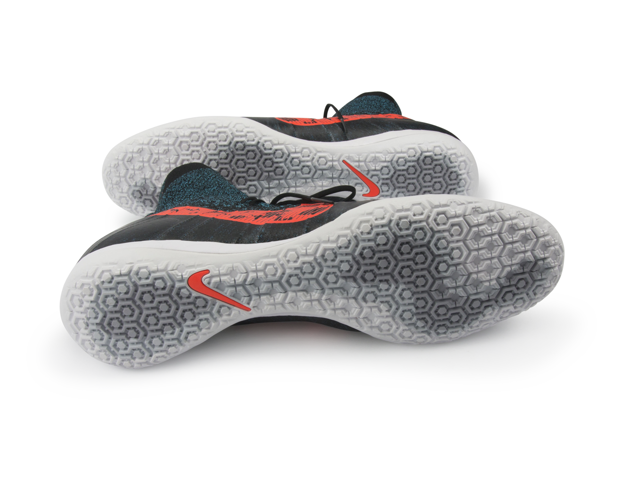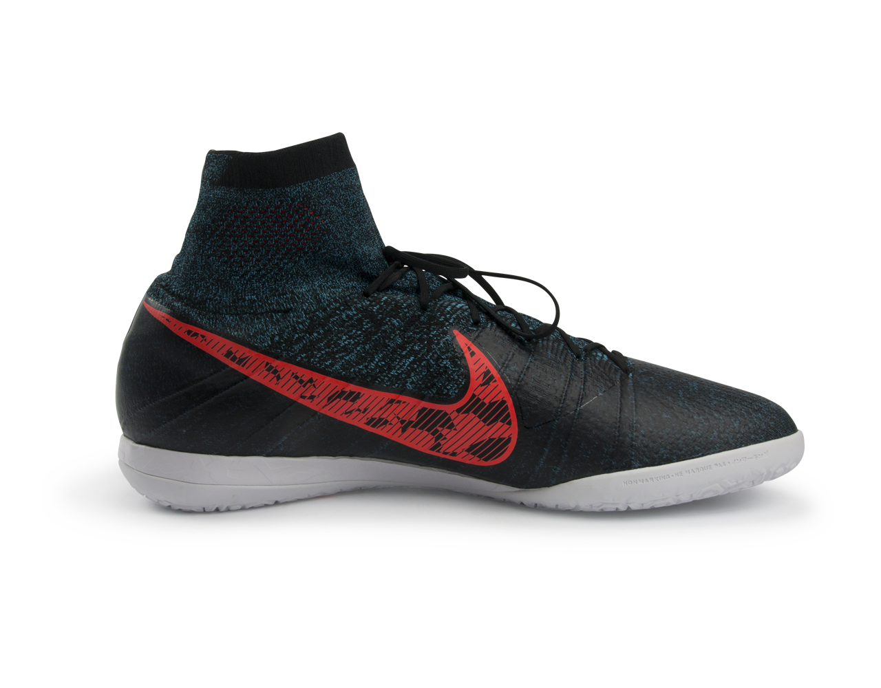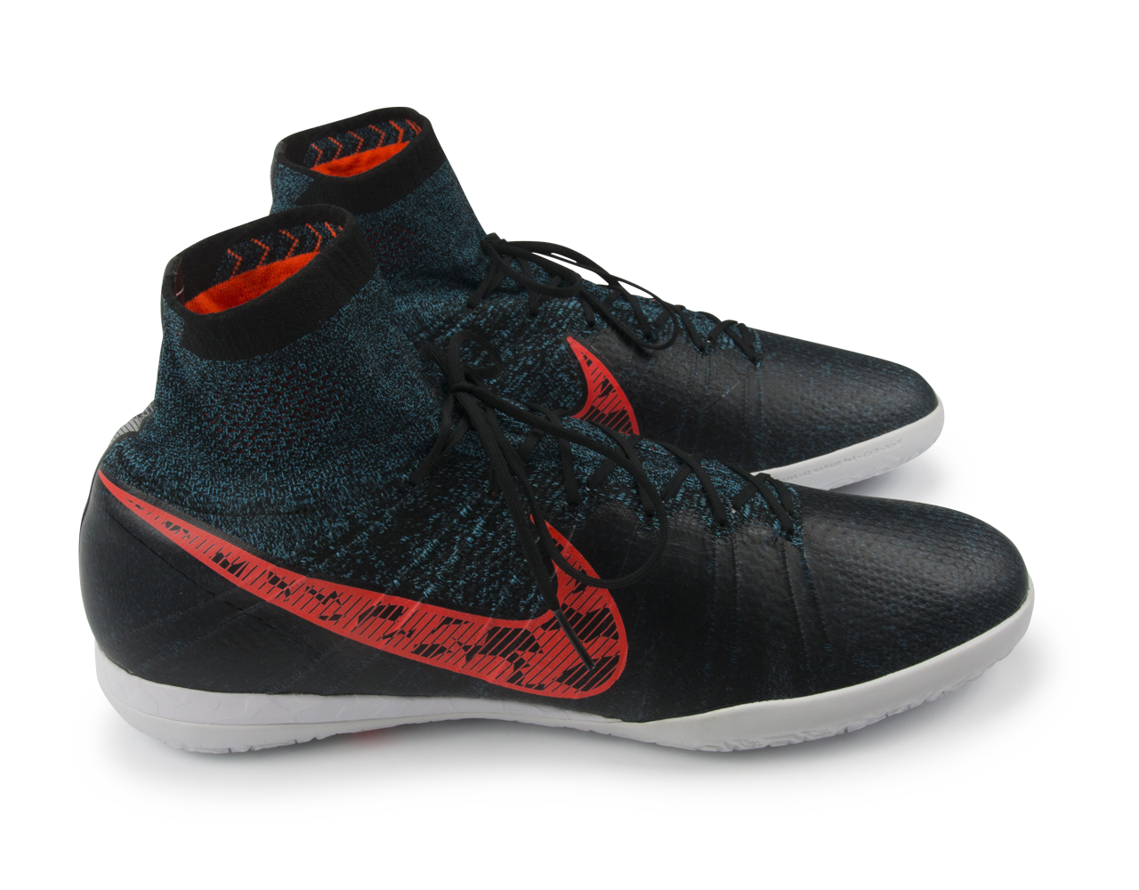 The Nike Elastico Superfly Men’s Indoor Soccer Shoe brings revolutionary Flyknit technology to the small-sided game for a locked-down fit, barefoot touch and explosive speed. One-piece, tongue-less Flyknit upper seamlessly integrates areas of high breath-ability, stretch and support. The Dynamic Fit collar fits over the ankle for a sock-like feel that locks the foot in place. The micro-textured upper combines three technologies Flyknit, NikeSkin and All Conditions Control (ACC) to bring your foot closer to the ball for an almost barefoot touch. Designed specifically for the court and other indoor-competition (IC) surfaces, the flexible, low-profile outsole brings the foot closer to the ground and provides quickness in all directions.