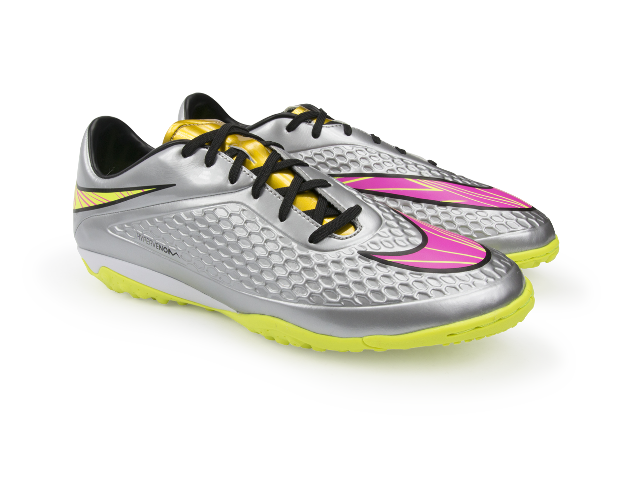 The Neymar Hypervenom Phelon II (TF) Men’s Turf Football Boot is built for unrivaled agility on synthetic surfaces with an anatomical fit for effective lockdown. Its textured, leather-like upper enhances ball touch for maximum control. The anatomically correct shape creates a glove-like fit for on-pitch agility. Asymmetrical lacing system expands the ball control area and strike zone. Leather-like upper is textured for improved touch. Molded, perforated sockliner cushions to help reduce stud pressure.