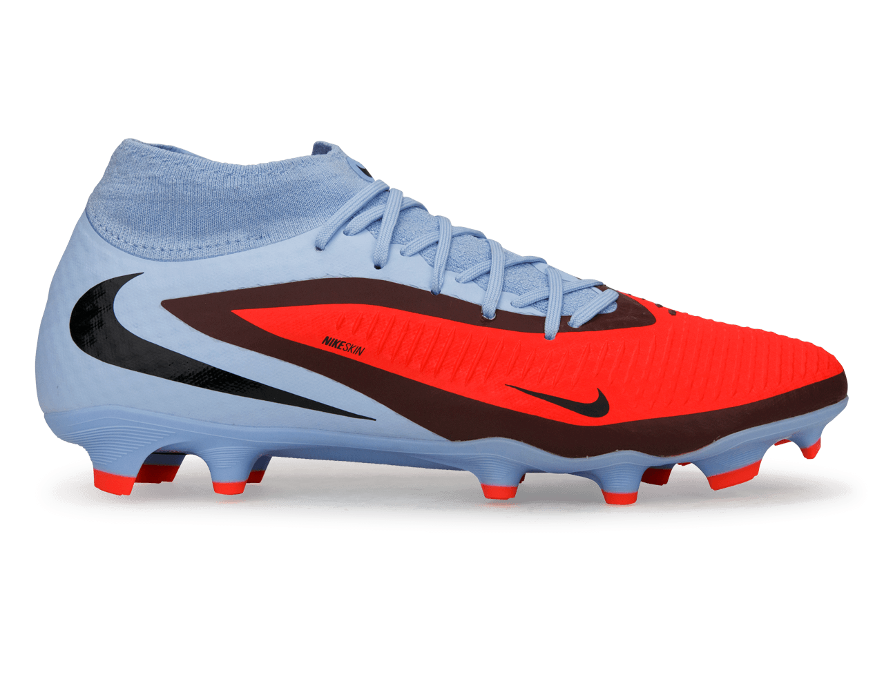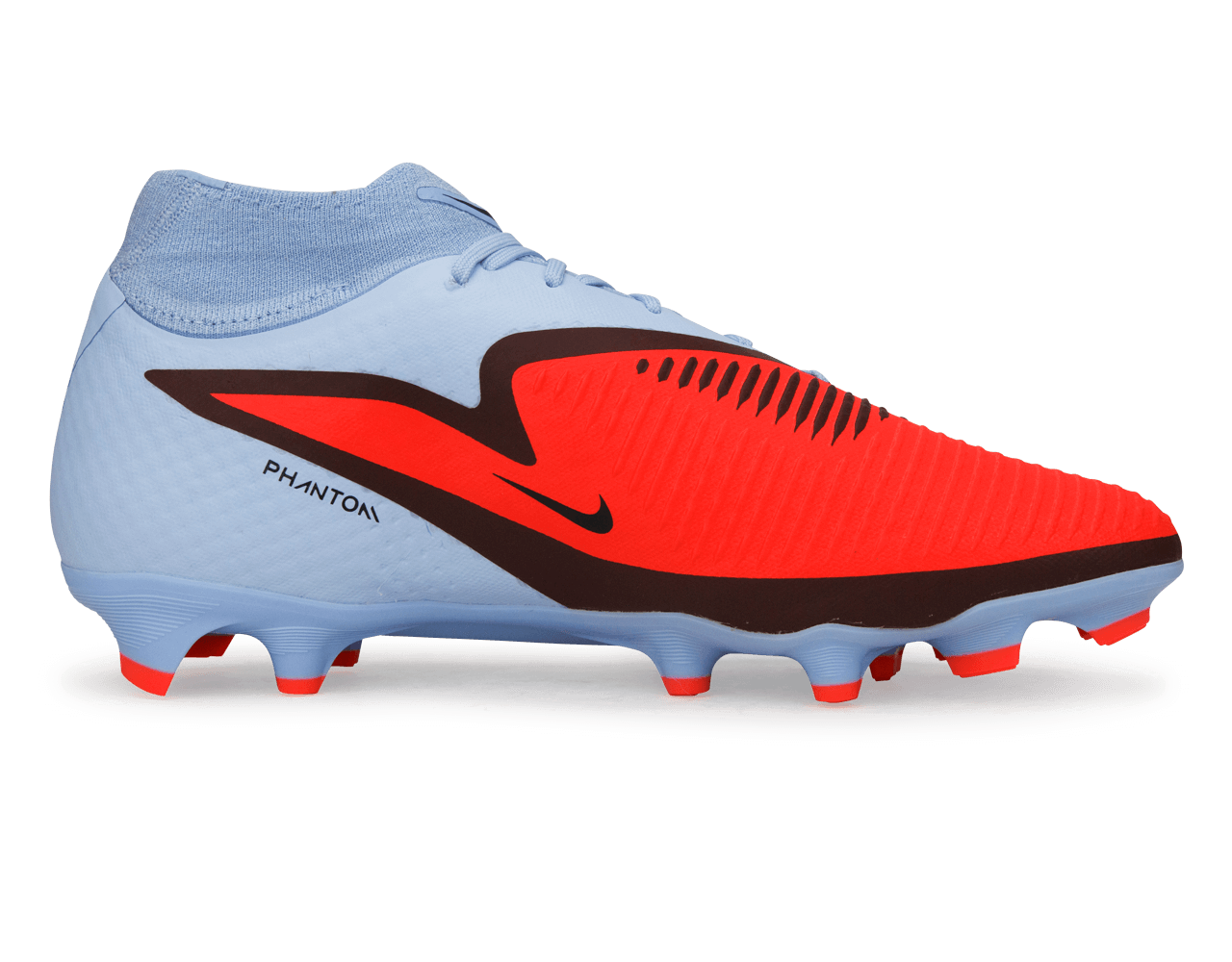 Experience sharper control and quicker directional changes with the Nike Men’s Phantom 6 Academy High FG/MG in Royal Tint/Bright Crimson. The textured upper enhances grip on the ball, while the responsive soleplate keeps you light on your feet. A supportive high-cut collar adds stability during sharp cuts, and the multi-ground stud pattern delivers reliable traction on both natural grass and artificial turf.