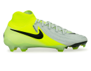 Nike introduces the Nike Men’s Phantom Luna II Elite FG Metallic Silver/Black/Volt cleats tailored for those committed to perfecting their craft on the soccer field. Designed for elite performance, these cleats feature Nike Gripknit technology covering the striking area, ensuring exceptional touch and grip in various conditions. The Nike Cyclone 360 traction pattern enhances agility and stability, facilitating quick movements with confidence. Asymmetric lacing and Flyknit cuff material provide a snug fit and support, while subtle ribs in the cuff aid in ball control.