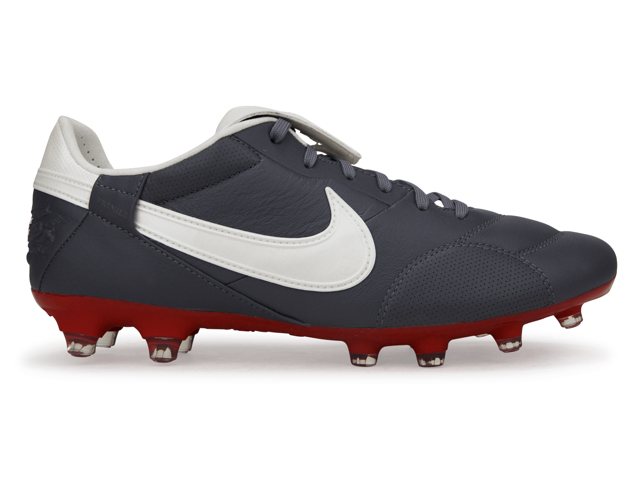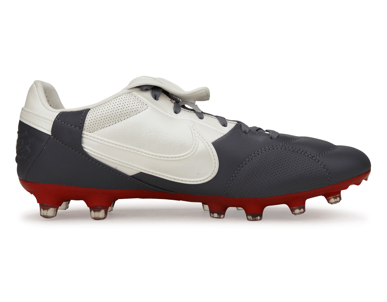 The Nike Premier III FG in Light Graphite/Varsity Red/Metallic delivers a pure, no-nonsense soccer experience for players who value touch, tradition, and effortless class. Made with a premium leather upper in a deep Merlot finish, these boots mold to your foot for a natural feel on the ball. The iconic fold-over tongue keeps the laces covered for a cleaner striking surface, perfect for accurate passes and powerful shots.