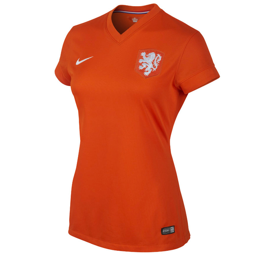 The 2014 Netherlands Stadium Women’s Soccer Jersey is made with sweat-wicking fabric for lightweight comfort. Featuring a woven team crest and graphic details that look like the real thing, this replica home shirt proudly celebrates the Flying Dutch.
