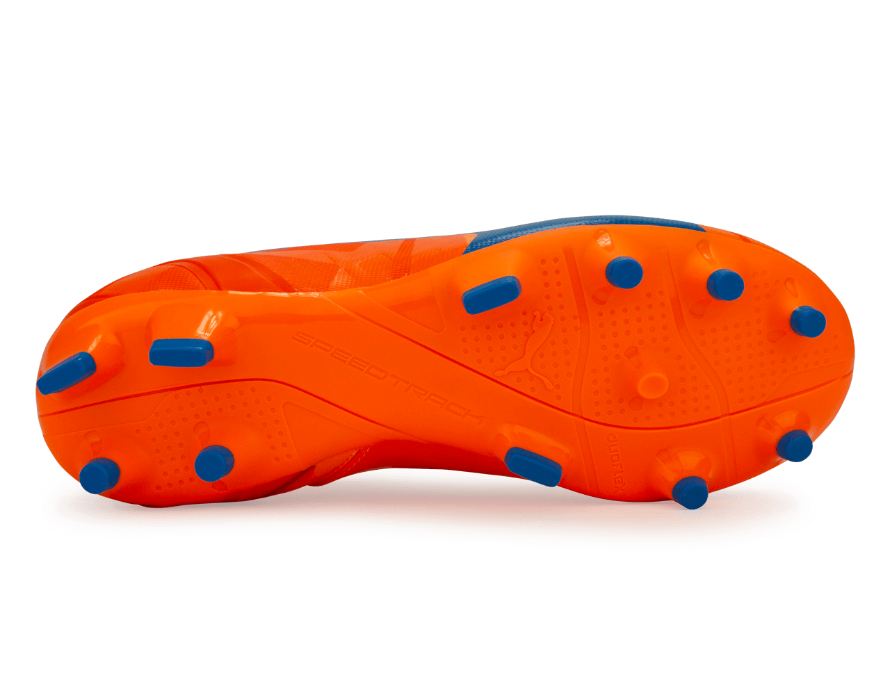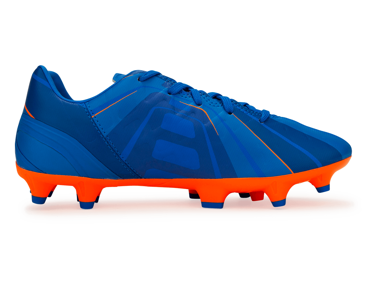 These evopower h2h fg soccer cleats are electric blue on the right cleat and orange clownfish on the right.