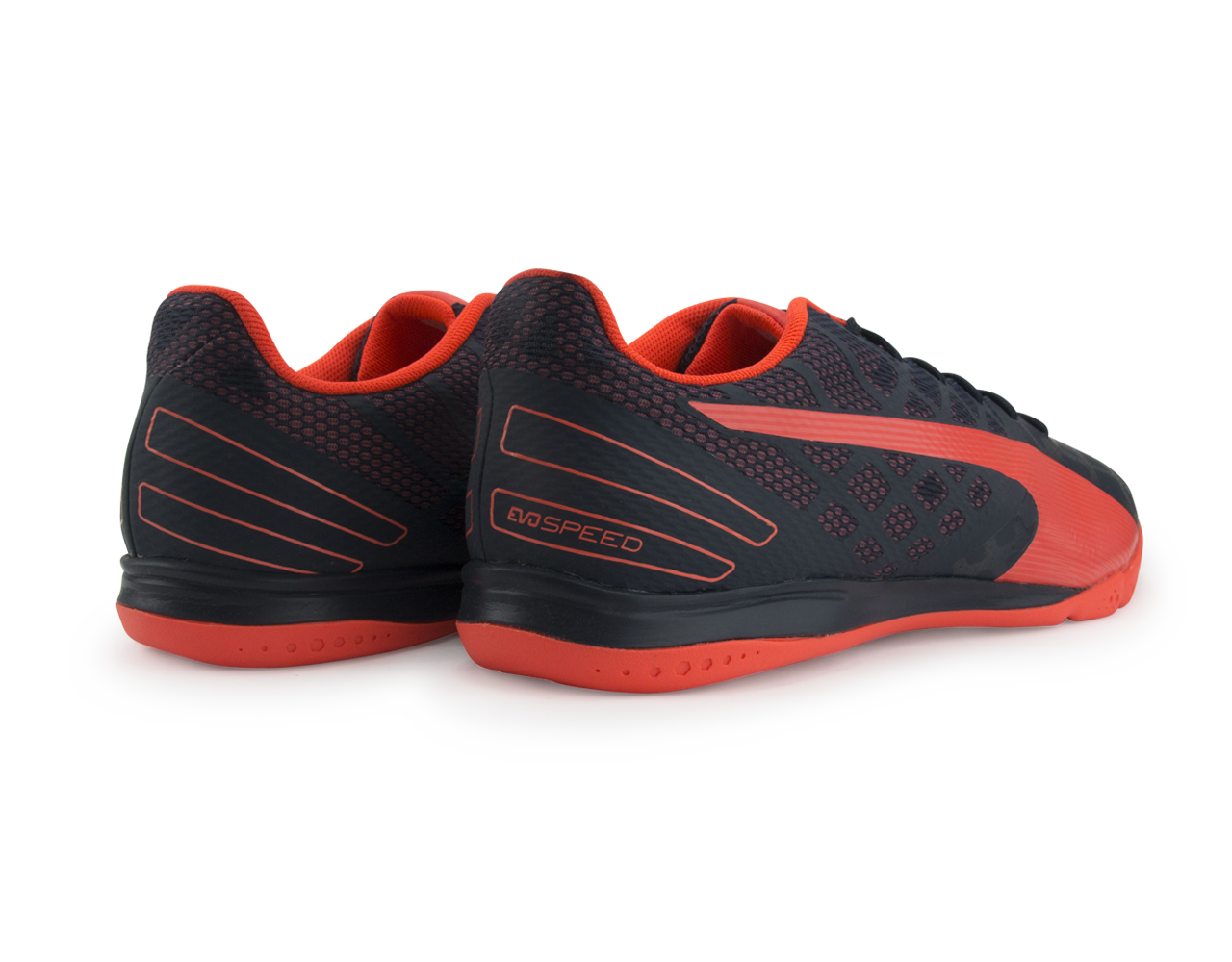 Lightweight in design and with plenty of flexibility, PUMA’s evoSPEED Sala 3.4 Indoor Trainers are ready for fast-paced indoor action.A minimalist construction sees the premium microfibre upper bring comfort, support and a close touch to the ball. With perforations down the sides and tongue this allows for plenty of breathability while the padded collar enhances the overall feel.When it comes to the indoor game then you need a sole you can rely on and so the non-marking rubber outsole provides plenty of grip for this demanding surface. With the added bonus of DuoFlex in the sole, this brings flexibility to your forefoot and where you need it most.This trainer weighs 215g (UK 8).